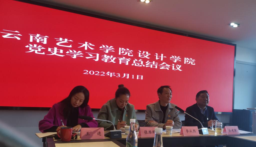 校党委副书记李从熙指出,一是设计学院党委、各党总支、党支部以及全体党员,要把党史学习教育不断的深入下去,坚持下去,持续下去。今天的党史学习教育总结是一个阶段性总结,并不意味党史学习教育就结束了,党史学习教育是一项长期任务,要把其中好的做法坚持下来,做到制度化、常态化。二是要把党史学习教育的阶段性成果转化为推动设计学院各项事业发展的动力。用党的创新理论武装头脑,关键在于指导实践和推动工作,要在坚持社会主义办学方向,全面贯彻党的教育方针上下功夫,要在推动基层党建方面下功夫,要在“党建+思政+艺术”上下功夫,要在为师生办实事上下功夫,服务于人才培养和全面发展。