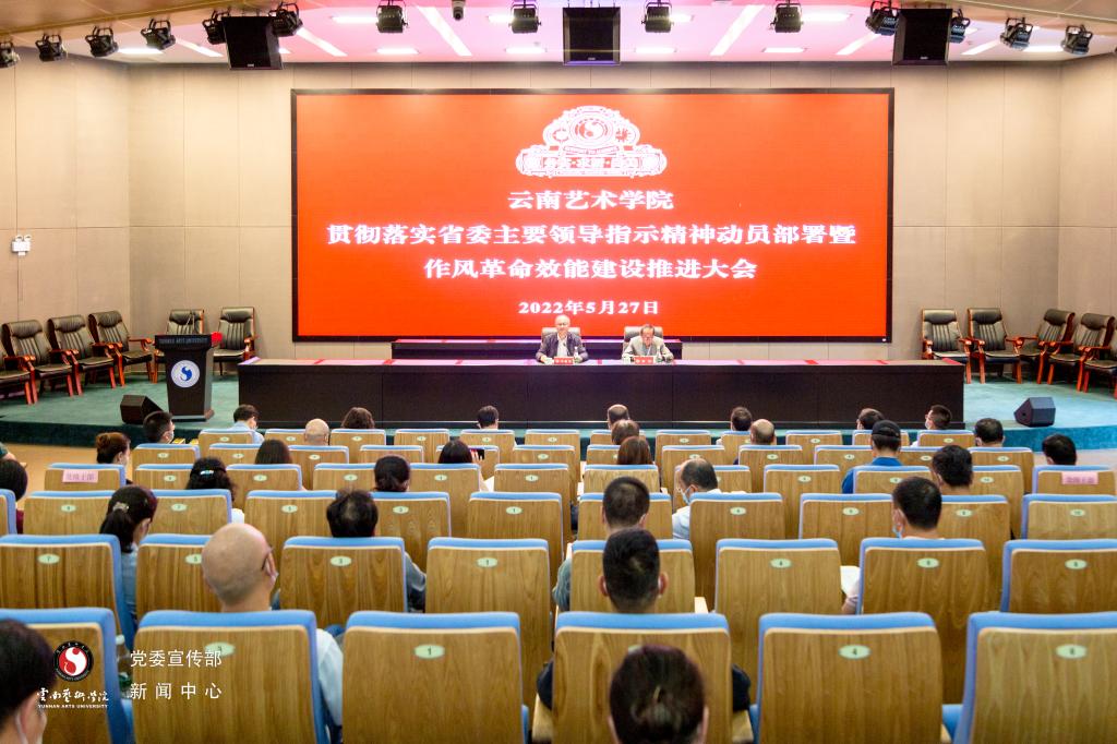 为深入贯彻落实省委主要领导对学校工作的指示精神,扎实推进作风革命效能建设,2022 年 5 月 27 日,买球在图书馆报告厅召开全校贯彻落实省委主要领导指示精神动员部署暨作风革命效能建设推进会。学校严格落实疫情防控工作要求,党政领导班子成员、副处以上干部、各教学单位骨干教师代表参加会议。会议由党委副书记、院长郭浩主持。