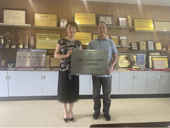 最后,音乐学院院长林林、昆明市民族歌舞剧院院长包朝阳分别代表双方签订校企合作协议,并举行“买球投注官方网站音乐学院实习实训基地”挂牌仪式。