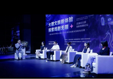 《大理文旅新体验探索戏剧无限+》沉浸式文旅创新发展论坛由买球戏剧学院副院长杨俊霞、大理华侨城党支部书记总经理杨振亚、《幻境2099》执行总导演,君看文化内容总监高婕妤、《幻境2099》编剧于昕彤、《幻境2099》主演青年演员王晨瑶五位嘉宾参与。他们分别就“沉浸式戏剧发展新趋势”、“文旅融合背景下高校戏剧人才培养变革”以及对“戏剧+”尝试的不同努力等问题从高校、企业、导演、编剧、演员的角度展开深入探讨。本次活动邀请到了来自中央、省、市等官方媒体,他们就“高校学生如何参与实践”、“《幻境2099》如何助力大理文旅的发展”以及“《幻境2099》的下一步规划”等问题对现场嘉宾进行提问并得到了嘉宾们鞭辟入里的专业解答。