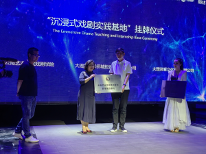 论坛结束后,买球戏剧学院院长杨军、华侨城大理公司总经理杨振亚及《幻境2099》总导演杨乐上台,为沉浸式实践基地举行揭牌仪式。双方共建的沉浸式戏剧实践基地正式启动。