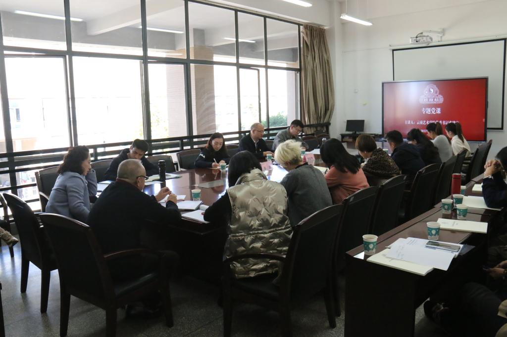 2022年11月14日14:30,校党委书记李建宇到音乐学院授专题党课,专题学习党的二十大精神。会议在音乐学院A301会议室进行,买球投注官方网站马克思主义学院党总支书记李三强,买球投注官方网站办公室(党委巡察办)副主任、科技处副处长骆圆、音乐学院党政班子、党总支委员、各支部书记、学院各科室负责人、各教学系系主任参加学习,音乐学院党总支书记纳海主持会议。