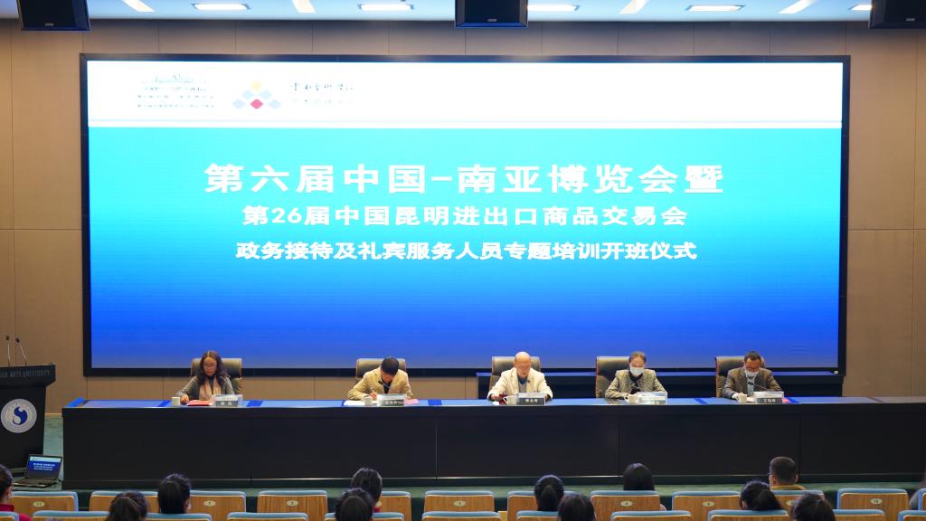 第6届中国—南亚博览会暨第26届中国昆明进出口商品交易会(以下简称“南博会”)于2022年11月19日-22日在昆明滇池国际会展中心举行。本届南博会是党的二十大召开后,我省举办的第一场大型国际综合展会。受第6届南博会执委会及云南省接待办公室任务委派,买球艺术管理学院礼仪与公关艺术专业、艺术管理专业75名师生承担本届南博会政务接待及礼宾服务工作。此项得到了买球投注官方网站党政领导的高度重视,多次过问筹备情况,艺术管理学院党政班子多次专题研究、落实部署,细化工作方案、责任落实到人,并成立项目教师管理团队,分工明确、通力合作,使工作项目化、项目清单化、清单具体化。