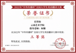 由中国外文局亚太传播中心(人民中国杂志社、中国报道杂志社)主办的“2022年“中外传播杯”全国大学生英语翻译大赛已于近日落下帷幕。全球1131所高校,共计9222位来自全球各地的大学生参加了本次比赛。买球20级艺术管理专业任哲怡同学代表学校参赛。