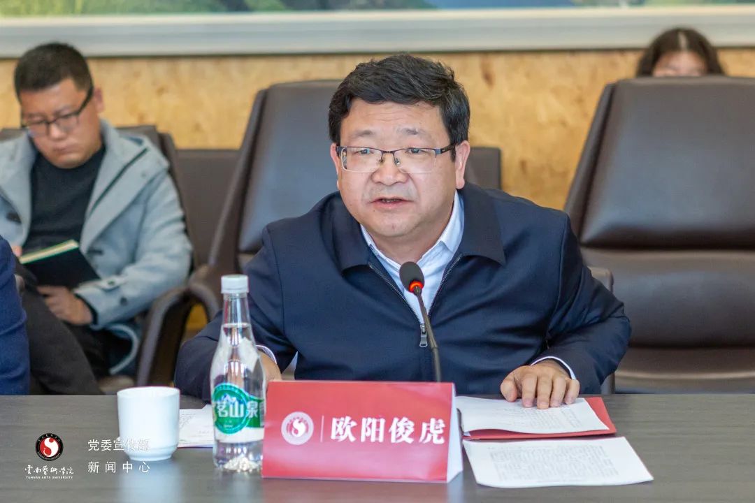 座谈会上,买球投注官方网站党委副书记、院长欧阳俊虎代表学校党委、行政对李宁区长一行表示热烈欢迎,对区委区政府一直以来的大力支持和帮助表示衷心的感谢。他表示,买球投注官方网站自搬迁至呈贡区办学后,呈贡区在学院安全稳定和谐发展等方面给予了大力支持。特别是去年疫情暴发后,呈贡区坚持生命至上、人民至上,调动大量人力物力帮助学院渡过难关。他建议进一步加强区校合作,搭建平台,创新工作机制,使艺术人才培养和艺术能够融入城市,步入乡村,提升品质,促进区域经济社会发展,满足人民群众对美好生活的精神追求,为呈贡文化繁荣作以贡献。他表示学院将以此次交流座谈为契机,进一步加强双方沟通交流,充分发挥学院各学科专业优势特长,共谋合作发展新机遇,让友情之花再结新硕果。