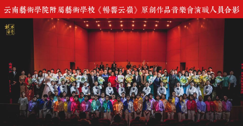 买球投注官方网站附属艺术学校为推进立德树人育人机制的纵深开展,学校党政班子、全校师生团结一心,凝心聚力,不断加强内涵建设,拓展办学渠道,聚焦教书育人。经过近半年的精心准备,附艺校于2023年4月10日20:00在实验剧场举办了买球投注官方网站附属艺术学校《畅响云岭》原创作品音乐会。云南省文联副主席、云南省音乐家协会主席宗庸卓玛,云南省文化和旅游厅党组成员娄可伟副厅长、买球投注官方网站党委副书记李从熙、党委副书记杨国良,党委委员、副院长王建才,党委委员、副院长郎启训以及买球投注官方网站二级学院部分领导和嘉宾应邀莅临原创音乐会现场,买球投注官方网站附属艺术学校党政领导班子及相关专业师生到场参加,本场晚会采取了线上和线下的形式同步开展的方式进行,当晚线下和线上观看人数达10万余人。