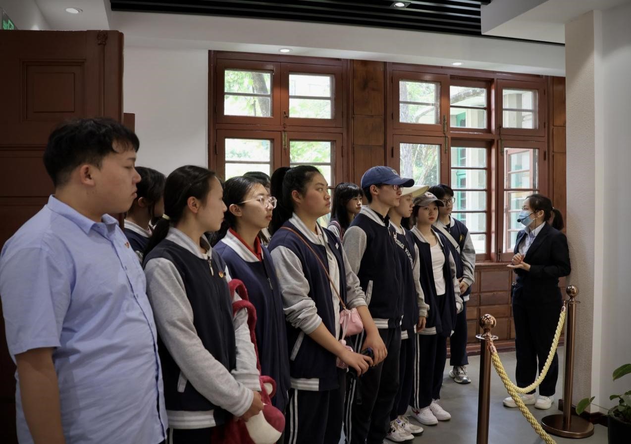 行进至云南起义纪念馆,一座鹅黄色的法式洋楼掩映在青柯碧树之中,优雅简约,气势非凡。这里是著名爱国将领、原云南省主席卢汉的住宅。在云南起义纪念馆,讲解员通过介绍卢汉先生的人物蜡像、生平事迹、起义壮举等历史事实,呈现出云南和平解放的过程和取得胜利的意义。在民族危亡之际,在解放危急关头,卢汉先生所体现的抵御外敌、珍惜和平的爱国情怀和高尚情操,令全体师生钦佩不已、为之动容。