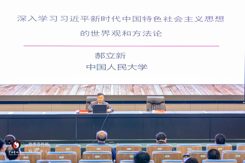 2023年4月27日下午,买球投注官方网站学习贯彻习近平新时代中国特色社会主义思想主题教育读书班第一次专题辅导暨党委理论学习中心组集体学习(扩大)在图书馆报告厅召开,邀请中国人民大学明德书院院长、教育部长江学者、特聘教授郝立新作“深入学习习近平新时代中国特色社会主义思想的世界观和方法论”专题辅导。