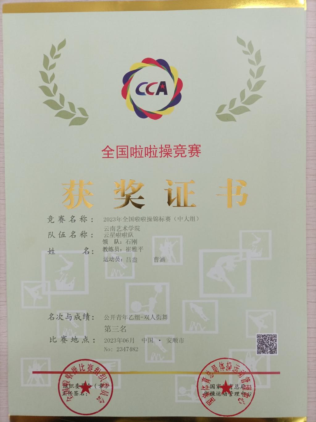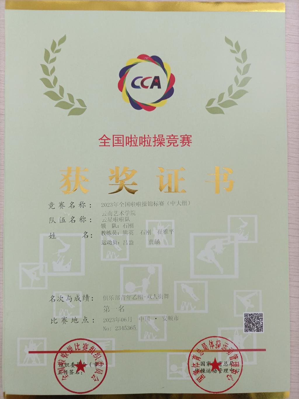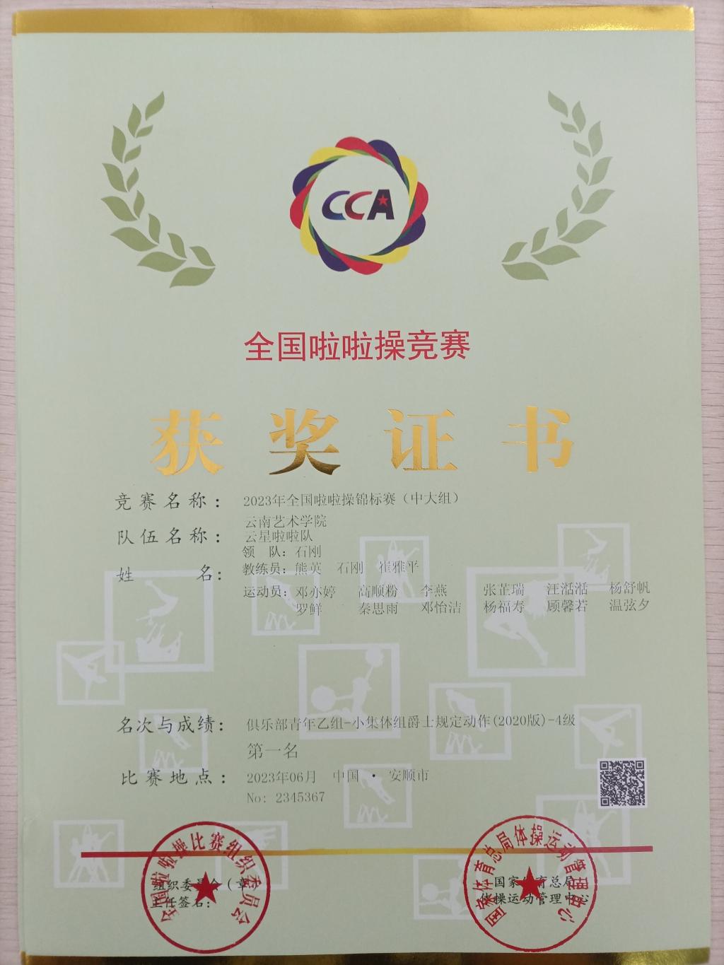 六月骄阳传捷报,全国赛场竞芬芳。我院啦啦操队在2023全国啦啦操锦标赛中喜获佳绩。本次比赛由国家体育总局体操运动管理中心、中国蹦床与技巧协会主办,于2023年6月2日至8日在贵州省安顺市奥体中心举行。接到比赛通知,学院领导高度重视,由体育教学部主任石刚老师领队,崔雅平、余甜两位老师组队训练、带队参赛。