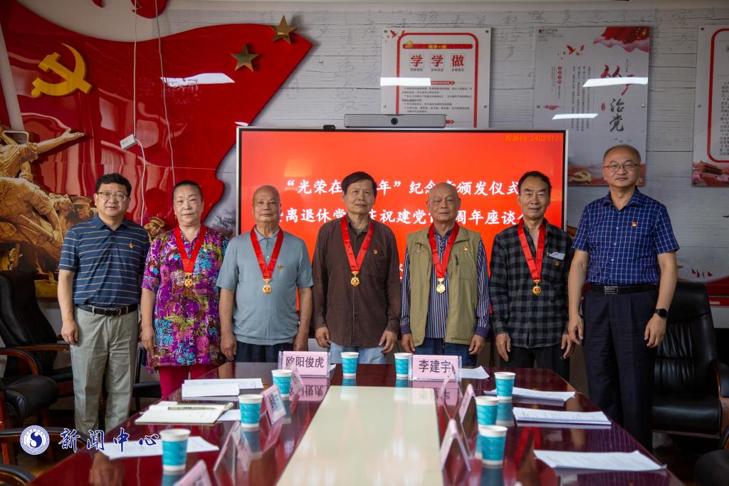 2023年7月3日,买球投注官方网站举行“光荣在党50周年纪念章”颁发仪式暨离退休党员庆祝中国共产党成立102周年座谈会。党委书记李建宇,党委副书记、院长欧阳俊虎为老同志颁发纪念章,党委副书记李从熙主持座谈会。