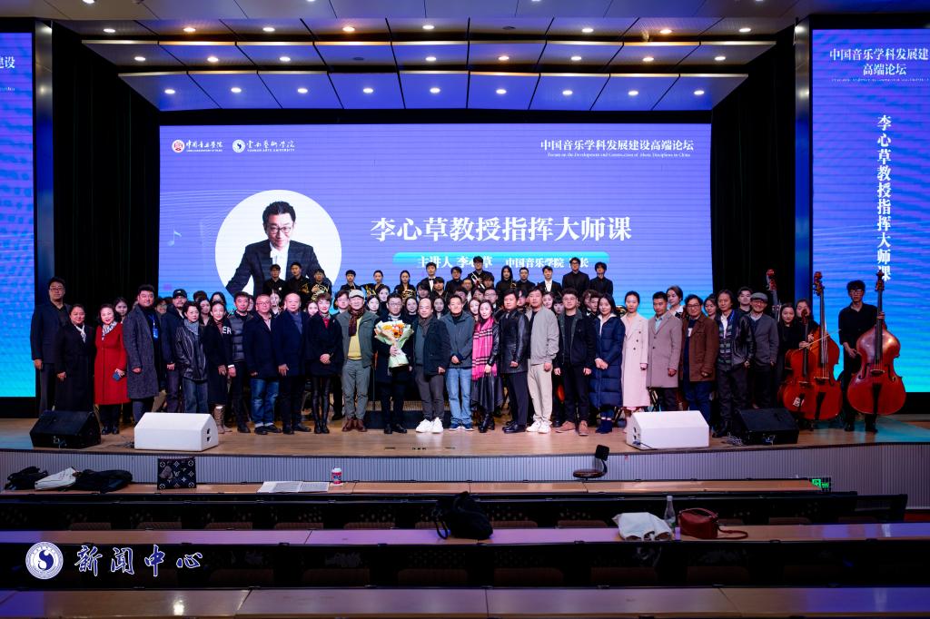 2023年11月21日上午,由中国音乐学院和买球投注官方网站联合主办、买球投注官方网站音乐学院承办、云南网协办的“中国音乐学科发展建设高端论坛”在买球投注官方网站图书馆报告厅隆重开幕。在开幕式结束后,当代我国著名指挥家、中国音乐学院院长李心草教授在音乐学院安康音乐厅为买球师生带来一堂精彩的指挥大师课。