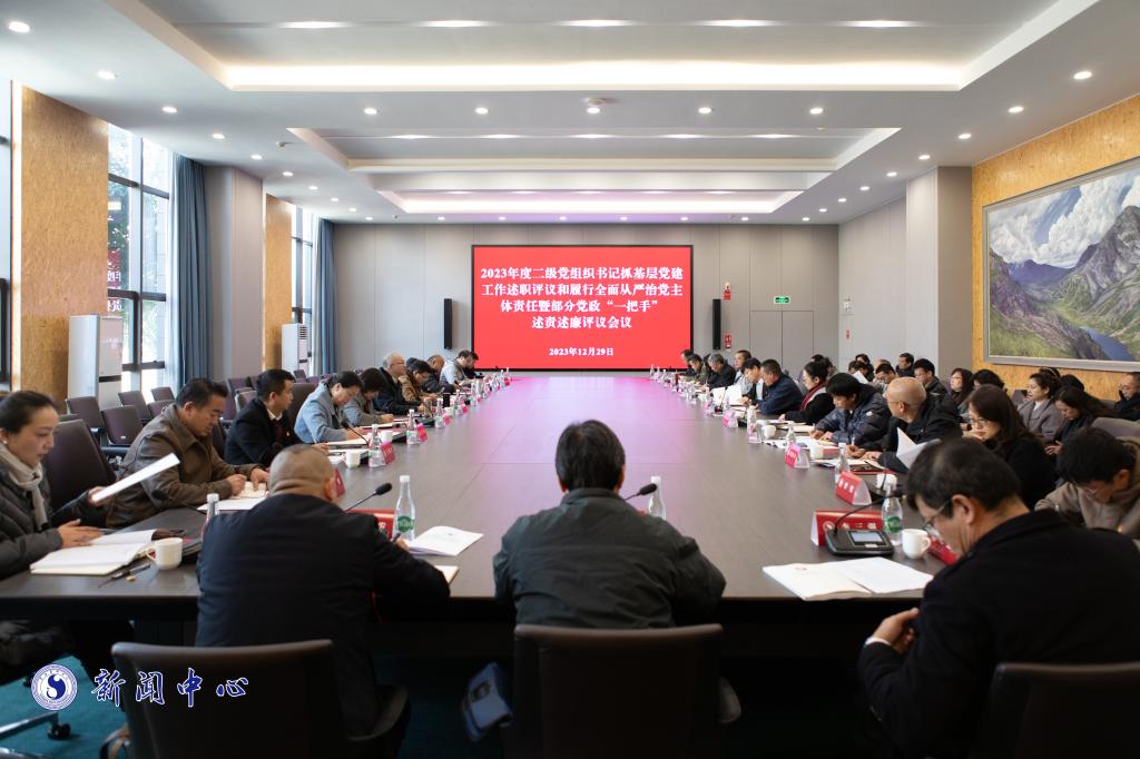 为深入学习贯彻习近平新时代中国特色社会主义思想和党的二十大精神,全面贯彻习近平总书记关于党的建设的重要思想,巩固主题教育成果,总结交流工作经验,推动学校党建工作提质增效,12月29日,买球投注官方网站在图书馆会议室召开2023年度二级党组织书记抓基层党建工作述职评议和履行全面从严治党主体责任暨部分党政“一把手”述责述廉评议会议。学校党委书记李建宇主持会议并作总结讲话。