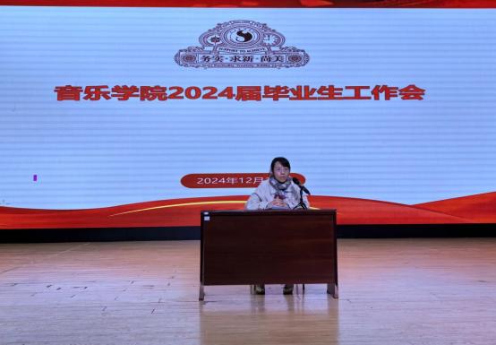 为做好2024届本科毕业生实习及就业工作,12月20日中午,音乐学院在A206安康音乐厅召开了2024届本科毕业生实习和就业动员会,副院长侯静宜、毕业班辅导员吴建勇及全体本科毕业生参加了此次会议。