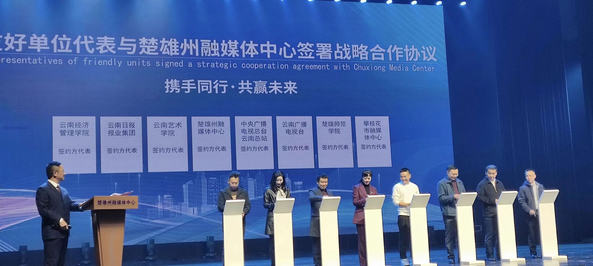 11月8日,买球投注官方网站党委委员、副院长王建才教授带队赴楚雄州融媒体中心开展“访企拓岗”工作,并签署战略合作协议。电影电视学院院长汪克敏教授、广播电视编导系教师张贻苒副教授参加了此次活动。