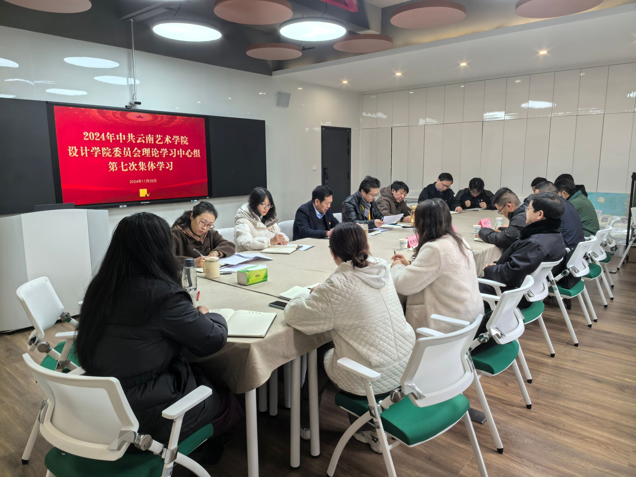 办公室(党委巡察办)副主任崔翔、党委宣传部副部长崔琳、音乐学院党委副书记肖本俊到会巡听旁听。设计学院党政班子成员、党支部书记、相关科室负责人参加学习。