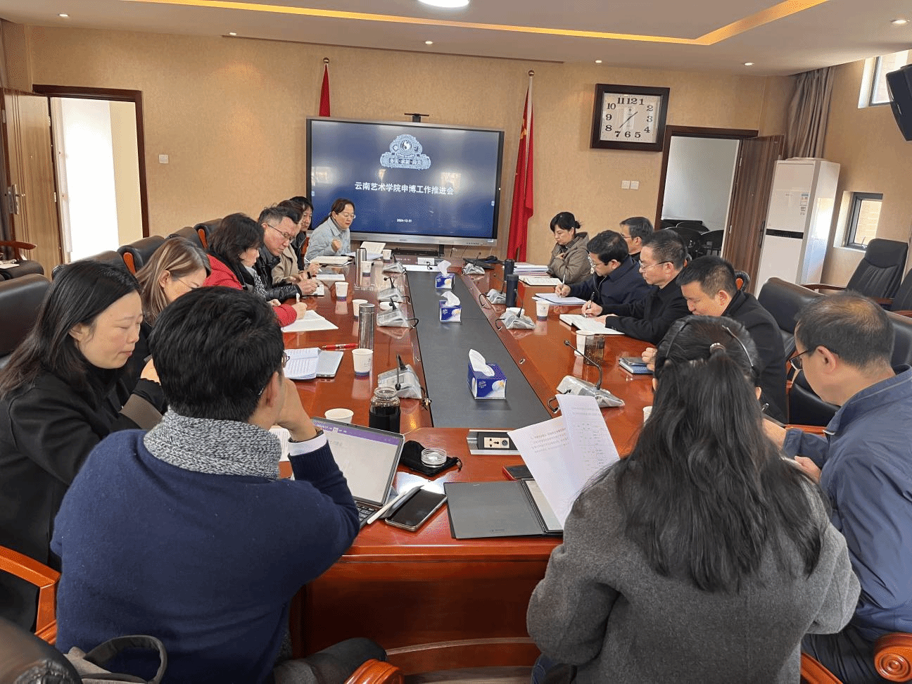 12月31日下午,学校在行政楼322会议室召开申博工作推进会。党委副书记、院长欧阳俊虎,党委委员、纪委书记杨军伟,副院长陈劲松,党委委员、副院长王建才、蒋锋、郎启训出席会议,相关职能部门负责人、省级立项博士学位授权点负责人参加会议。会议由院长欧阳俊虎主持。