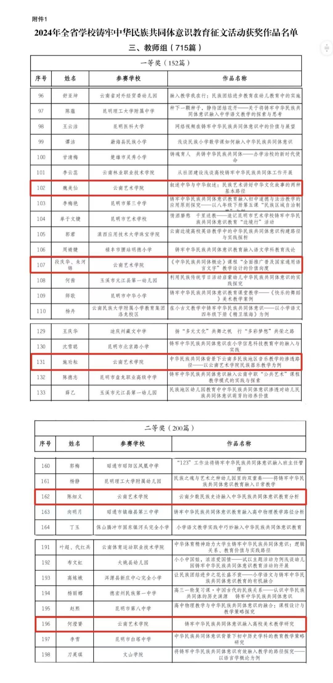 二、2024年全省学校铸牢中华民族共同体意识教育征文活动获奖作品名单
