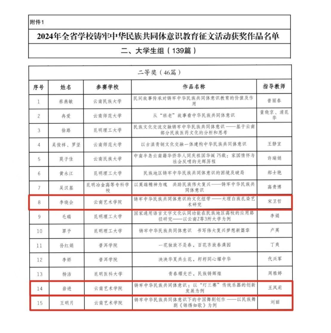 岩进:《铸牢中华民族共同体意识:以“玎三赛”传统乐器的创新发展为例》;指导教师:王凤莉。