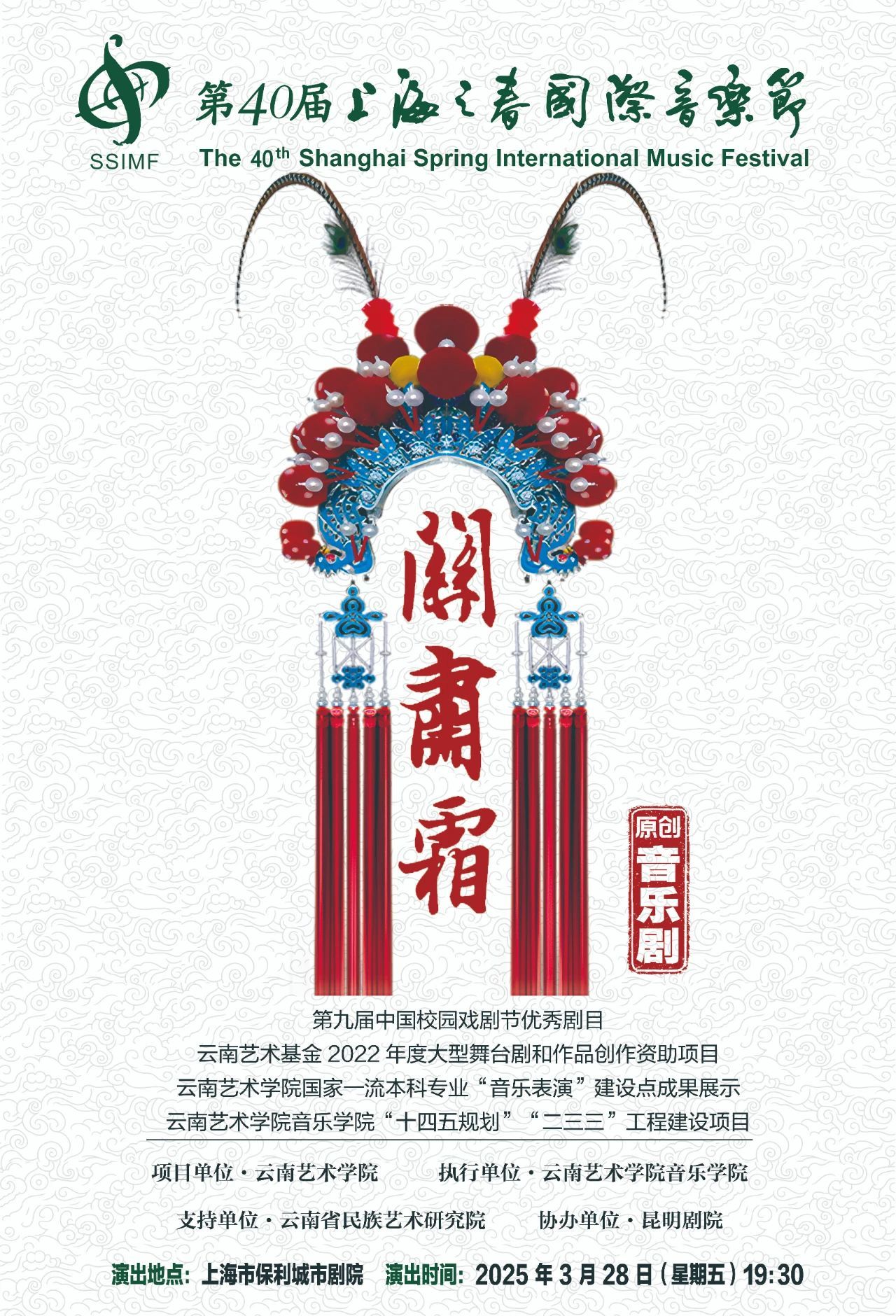 2025年3月28日,买球投注官方网站音乐学院原创音乐剧《关肃霜》在保利上海城市剧院精彩上演。