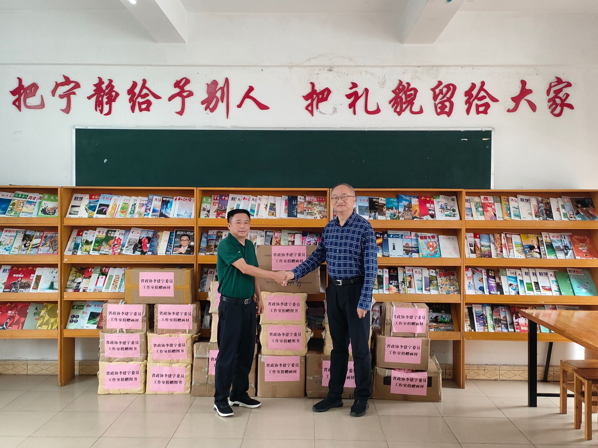 5月16日,省政协李建宇委员工作室在富宁县开展美育浸润行动计划捐赠活动。省政协委员、党委书记李建宇率队前往买球投注官方网站美育浸润行动计划驻地,向文山州富宁县第一中学图书馆捐赠图书和画材。