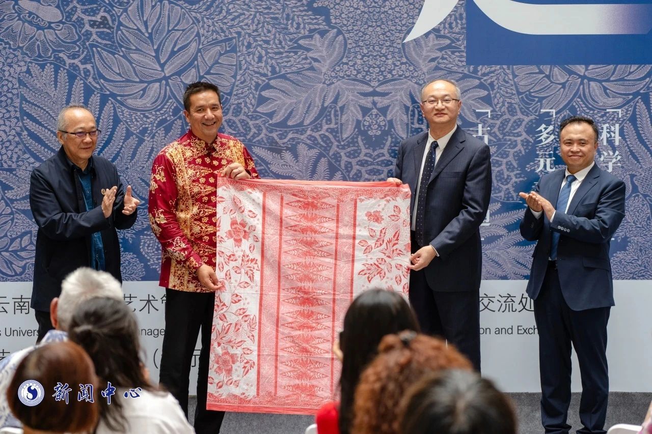 默罕默德·阿克玛·宾·阿卜杜·瓦哈布致辞。他指出,中马师生携手创作的蜡染作品,以深邃靛蓝为墨,以匠心技艺为笔,在布料上勾勒出新时代海上丝绸之路的崭新图景,这些作品是两国情谊代代相传的生动见证。希望以此次工作坊为桥梁,进一步推动更多文化交流和文明互鉴。