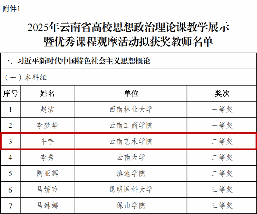2025年5月29日至30日,由中共云南省委教育工委主办,云南省高校“中国近现代史纲要”课程教研中心、云南民族大学马克思主义学院承办的2025年云南省高校思想政治理论课教学展示暨优秀课程观摩活动在云南民族大学举办。来自全省43所高校的118名优秀思政课教师入围教学展示决赛,比赛分为“本科组”“高职高专组”“研究生课程组”等共三个组别。买球马克思主义学院6位教师参赛,其中,牛宇、宾岩、朱河锦3位教师分别进入所授课程的决赛阶段。