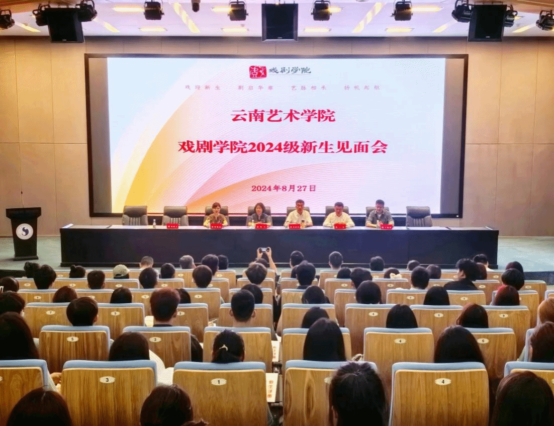 8月27日下午2点,在图书馆报告厅举行了2024级新生见面会开学第一课,戏剧学院党委书记刘恩权、院长杨军、党委副书记王建、副院长杨俊霞、各系部主任、科室负责人、班主任等参加了会议。会议由杨俊霞副院长主持。会上,杨军院长给新生提出了期望,希望同学们通过四年的学习,能成为一个健康、乐观、向上,有职业认同感的戏剧人。会议最后,刘恩权书记作总结讲话,用真诚的话语、真挚的情感、饱满的热情介绍了戏剧学院的历史与学院的发展,鼓励同学们要在这里发光发热,努力学习,为买球争光,为戏剧添彩,为自己加油!