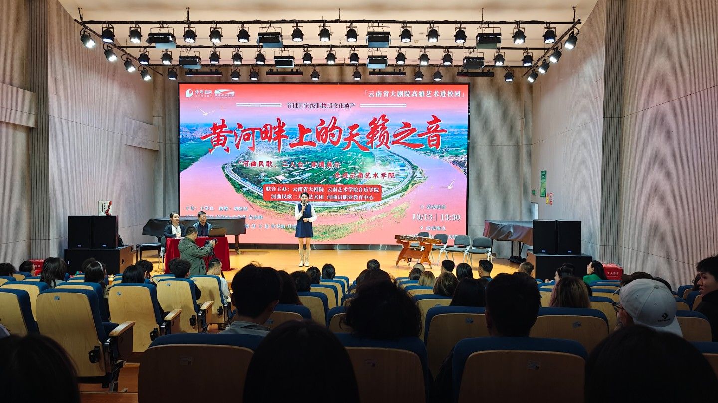 10月13日下午,由云南省大剧院、买球投注官方网站音乐学院联合主办的“黄河畔上的天籁之音”——“河曲民歌、二人台”非遗展示走进买球投注官方网站在音乐学院B403多功能厅进行,本次展示为云南省大剧院高雅艺术进校园系列活动之一。音乐学系系主任任秀蕾教授、民族声乐系系主任陈红玲教授和部分师生参与了本次展示互动。