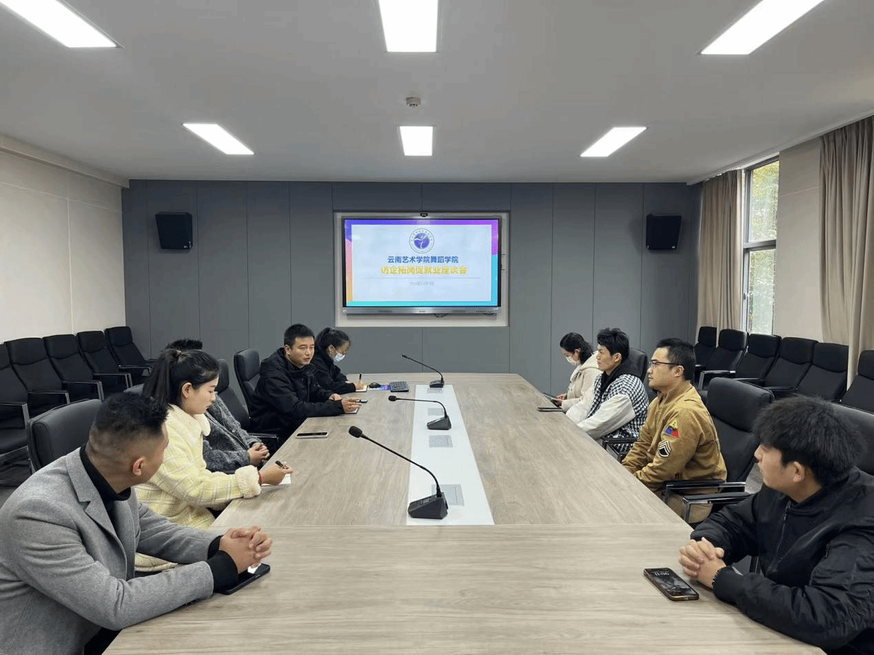 舞蹈学院与北京舞研艺美教育咨询有限公司、永善县溪洛渡文化演艺有限公司等7家单位开展访企拓岗促就业座谈会,各用人单位有关负责人参加座谈