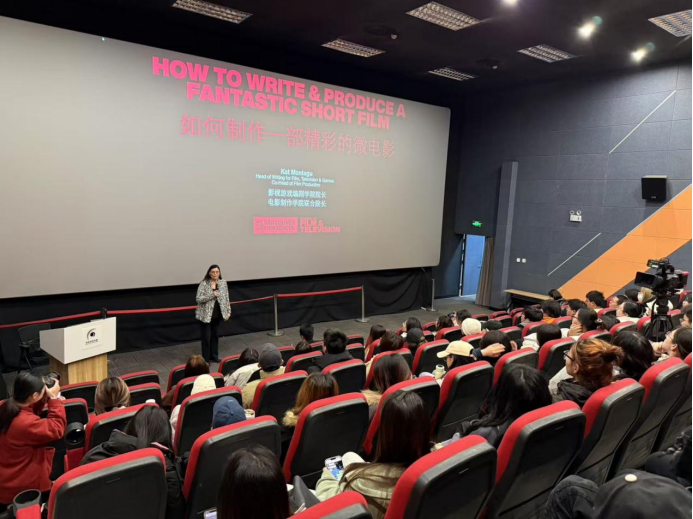11月7日温哥华电影学院联合院长,著名编剧Kat Montagu女士受学院邀请在影视学院开展了主题为“如何制作一部精彩的微电影”的工作坊。凯特·蒙塔古(Kat Montagu)女士现任加拿大温哥华电影学院影视游戏编剧学院院长、电影制作学院联合院长,是多本影视类畅销书作者。作为有着丰富的影视行业从业经验的编剧和制片人,凯特·蒙塔古从实践性视角出发,仔细分解了一部微电影从立意和创意、剧本创作、制作和拍摄,到后期剪辑和版权发行方面的诞生过程,参加工作坊的同学纷纷表示受益匪浅。
