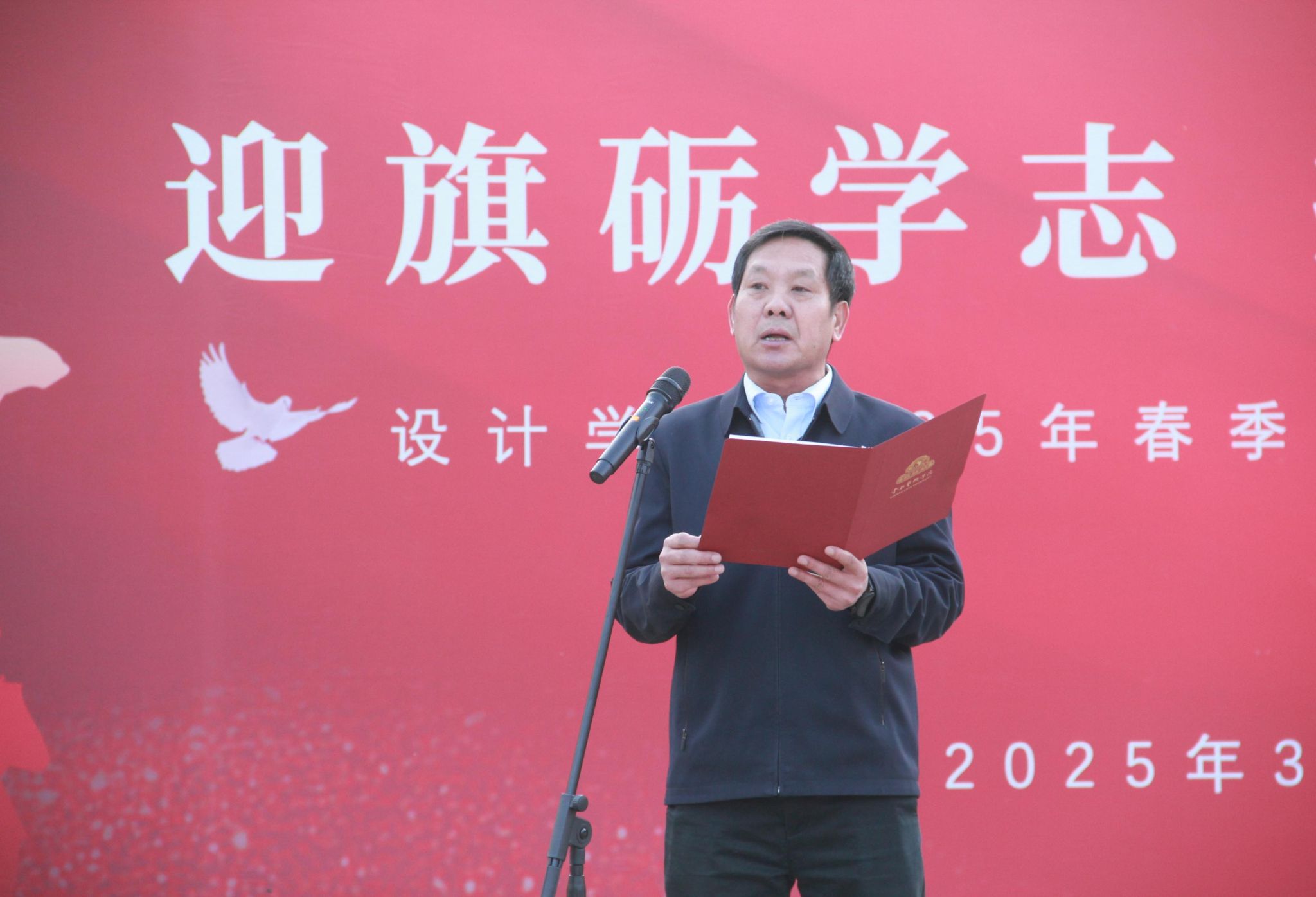 为深入学习贯彻习近平新时代中国特色社会主义思想,推进落实“时代新人铸魂工程”,引导全院师生厚植爱国情怀,以学风建设助力学院教育教学高质量发展,设计学院于2025年3月3日8:00在学校国旗广场举行“迎旗砺学志,扬帆正学风”升旗仪式,设计学院党委书记余光荣、党委副书记欧阳继梅、全体辅导员老师、班主任代表和2024级全体学生参加了升旗仪式,仪式由欧阳继梅主持。