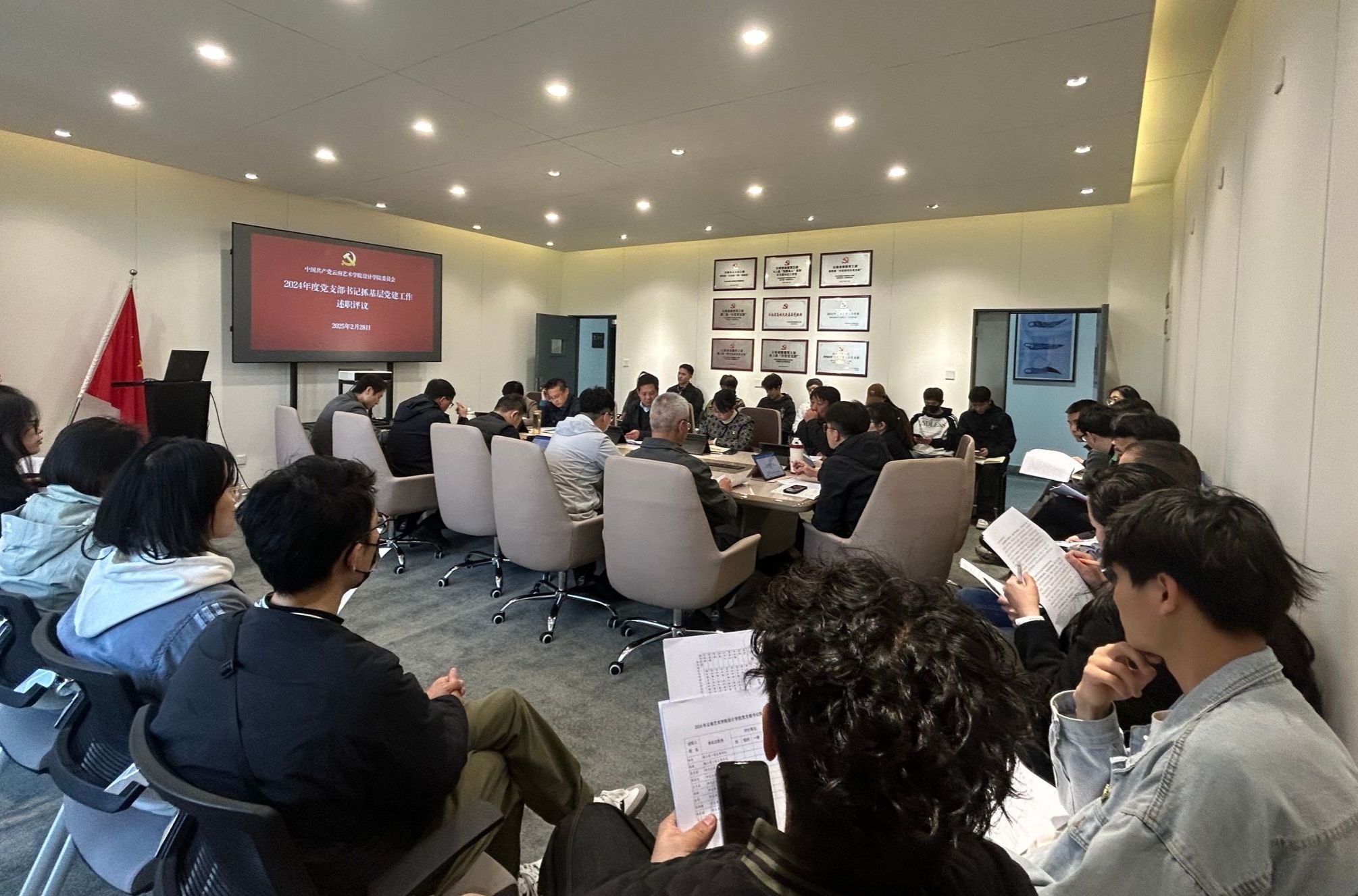 2025年2月28日,设计学院召开2024年度党支部书记抓基层党建工作述职评议会议。设计学院分管联系校领导、买球投注官方网站党委副书记、院长欧阳俊虎同志到会指导,设计学院党政班子成员、各党支部书记、党支部委员、师生代表参加会议。会议由设计学院党委书记余光荣同志主持。