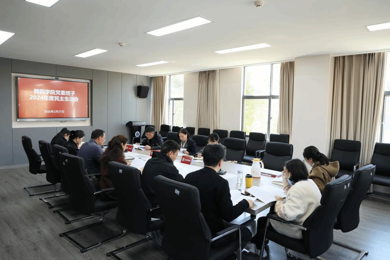 2025年2月27日,买球投注官方网站舞蹈学院党委领导班子召开2024年度民主生活会。学校党委副书记李彦萍同志、设计学院党委副书记(纪委书记)欧阳继梅同志、党委宣传部意识形态管理科科长邓潇同志到会督导。会议由舞蹈学院党委书记朱超主持,党委班子成员、处级党员领导干部出席会议,非中共党员处级干部黄玲列席会议。