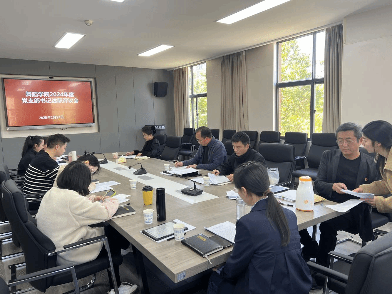 2025年2月27日,舞蹈学院召开2024年度党支部书记抓基层党建工作述职评议会议。舞蹈学院党政班子成员、各党支部书记、党支部委员、党员和师生代表参加会议。会议由舞蹈学院党委书记朱超主持。