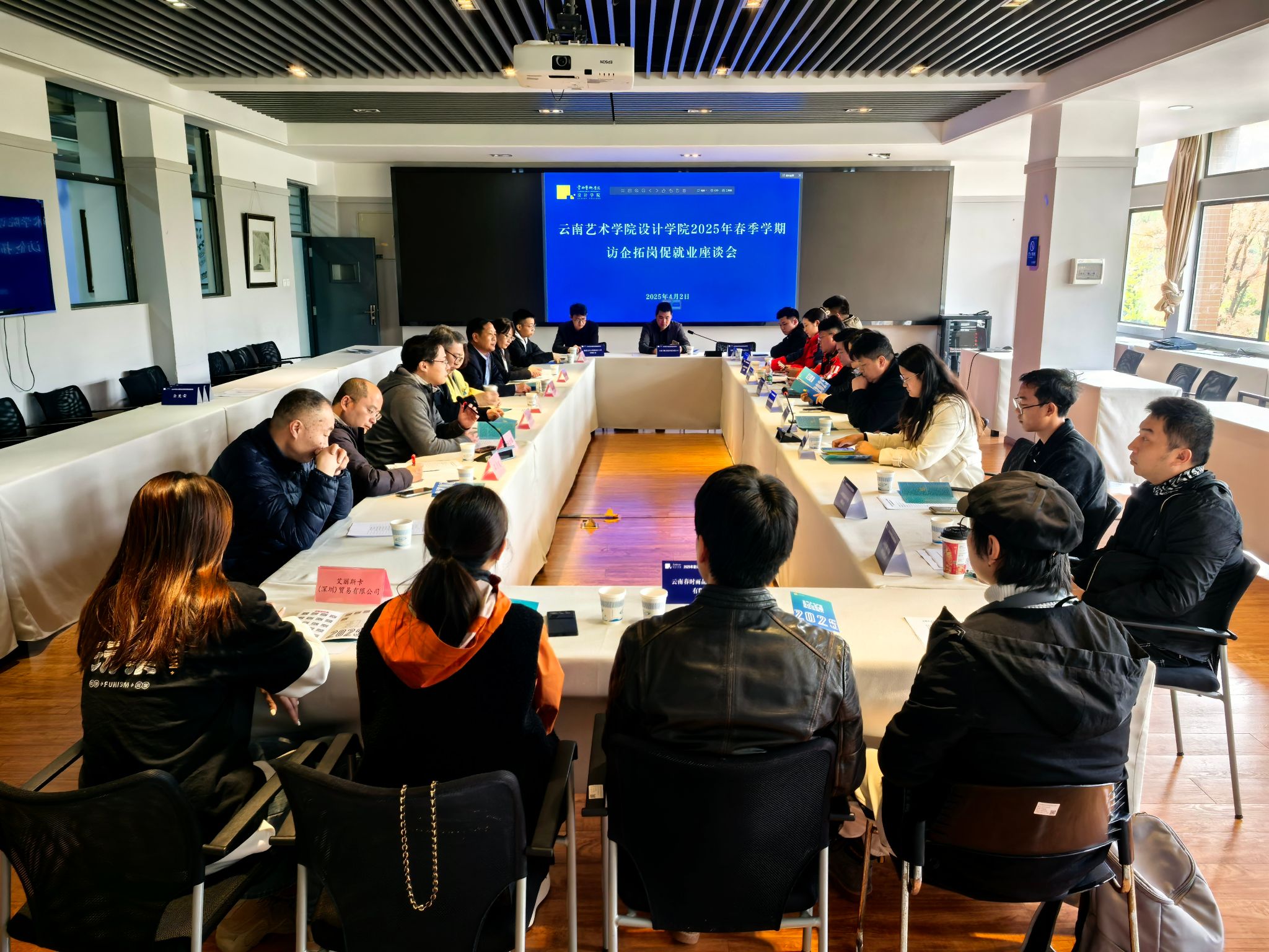 按照学校2025年毕业生就业创业工作相关要求,为进一步拓展毕业生就业新空间、破解毕业生的就业难题,满足毕业生求职应聘和用人单位人才招聘需求,设计学院邀请40余家用人单位到校参加买球投注官方网站2025年美术设计类毕业生专场招聘活动,同期开展了访企拓岗促就业座谈会。买球投注官方网站招生与就业处处长杨灼、副处长缪祥彦,学生处(学生工作部、武装部)副处(部)长邵清友、设计学院党政班子、辅导员和17家用人单位代表进行了交流座谈。