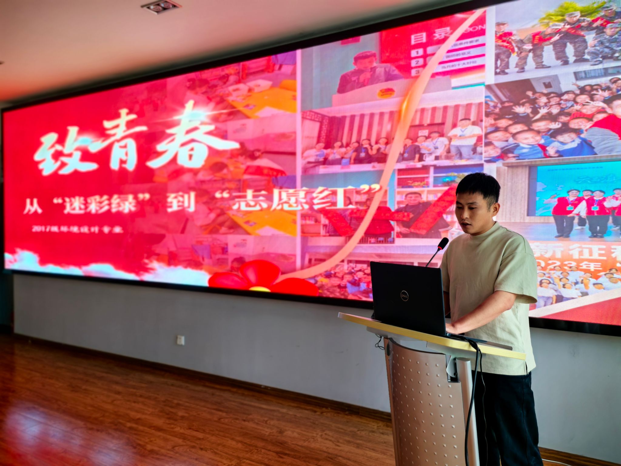 宣讲会邀请到设计学院2017级优秀校友、退伍军人、云南省优秀毕业生、西部计划志愿者欧阳晨辉作题为《致青春——从“迷彩绿”到“志愿红”》的宣讲。他以校园、军营、西部计划志愿服务经历为主线,分享了他的学习生活、奋斗故事与成长感悟,生动展现了出彩人生,“就”在基层,在同学中起到了很好的朋辈引领作用。