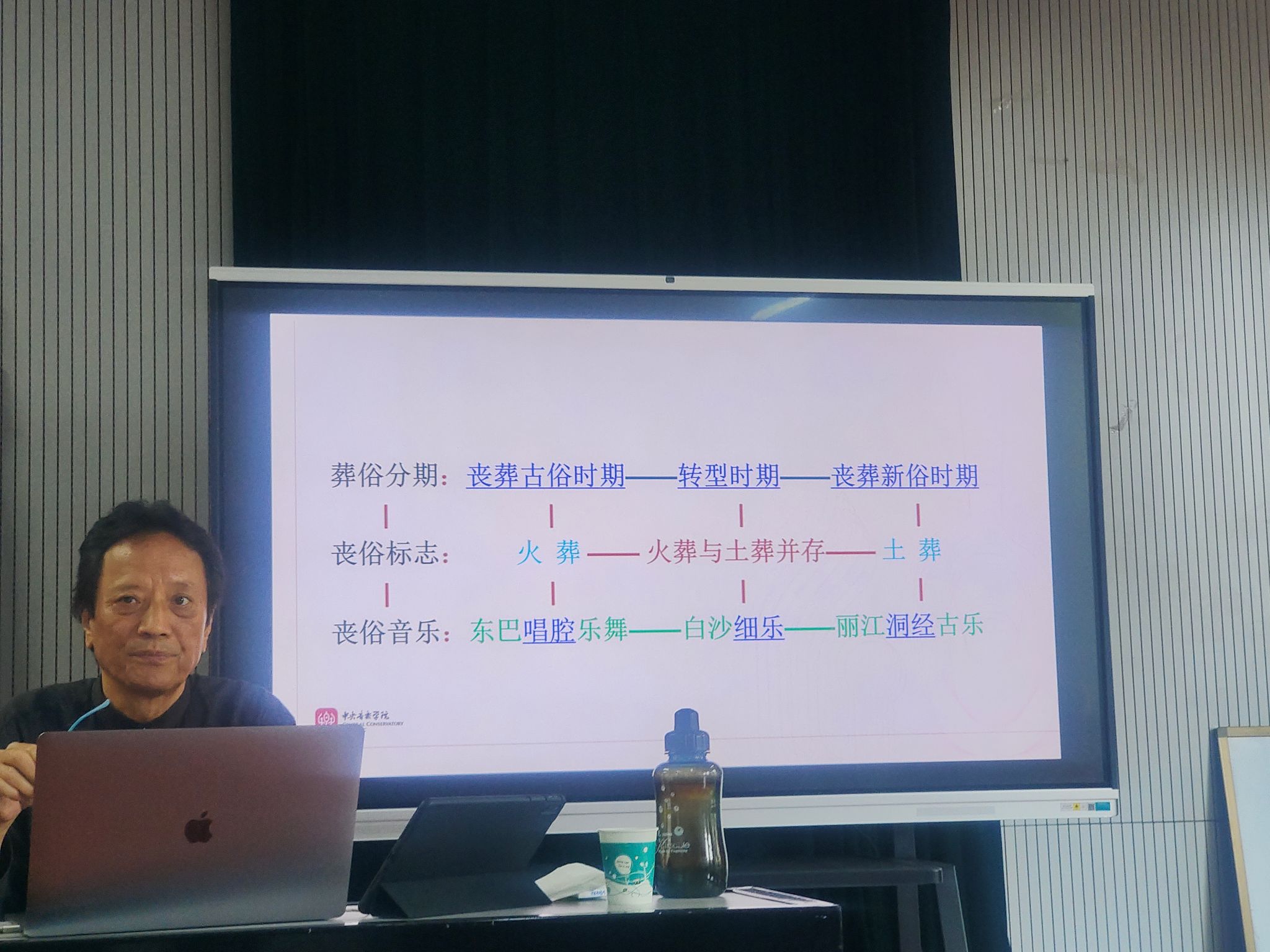 在历时一个半小时的讲座中,和云峰教授通过大量田野调查案例与声像资料,生动展现了这一非物质文化遗产的活态传承。他特别强调:“洞经音乐传入丽江后,纳西乐工既保留了汉族传统音乐的神韵,又融入了本土民间音乐的风采,形成独特艺术流派,是民族文化交融的精美产品和艺术结晶。”讲座尾声,和教授与听众就丽江洞经音乐的相关话题展开了深入讨论,现场学术氛围热烈。
