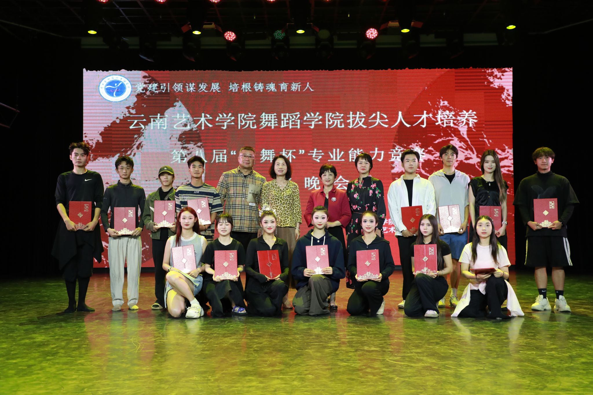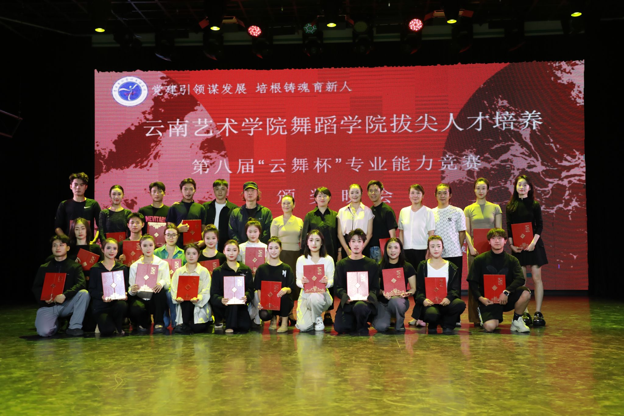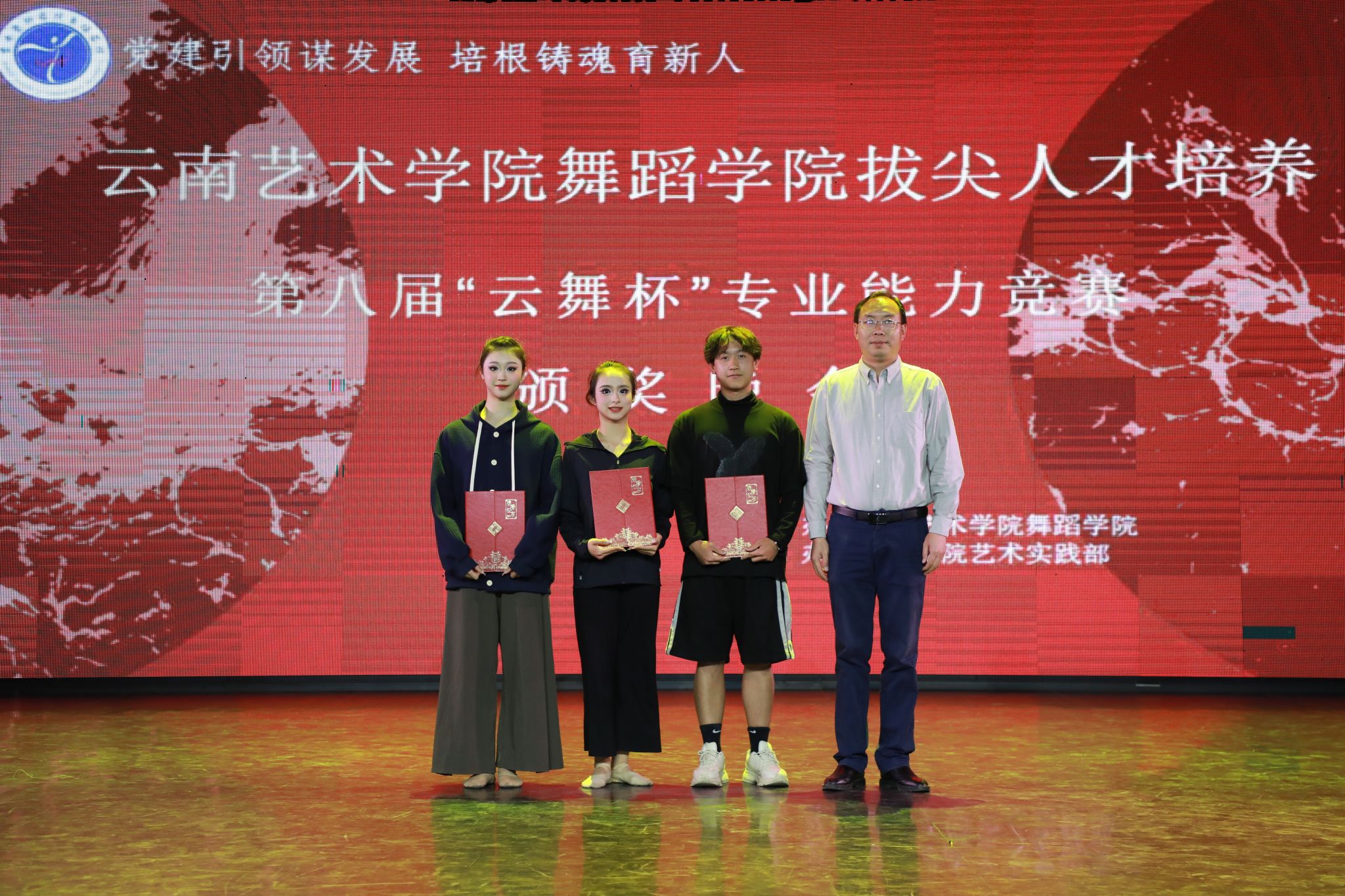为贯彻落实习近平新时代中国特色社会主义思想,学习宣传贯彻习近平文化思想,落实立德树人根本任务,培育和践行社会主义核心价值观,培养“德艺双馨”的舞蹈艺术人才,舞蹈学院于4月29日举办了拔尖人才培养——第八届“云舞杯”专业能力竞赛颁奖晚会。买球投注官方网站副院长、党委委员王建才教授,舞蹈学院原院长、省舞蹈家协会名誉副主席朱红教授,省舞协驻会副主席、国家一级演员郭丽娟,昆明市舞蹈家协会主席、国家一级编导疆嘎,舞蹈学院原院长程春云教授,云南省歌舞剧院艺术总监、国家一级编导钱学涛,以及来自云南民族大学艺术学院、买球投注官方网站附艺校等兄弟院校的同仁出席颁奖晚会;舞蹈学院党政领导及师生参加活动。