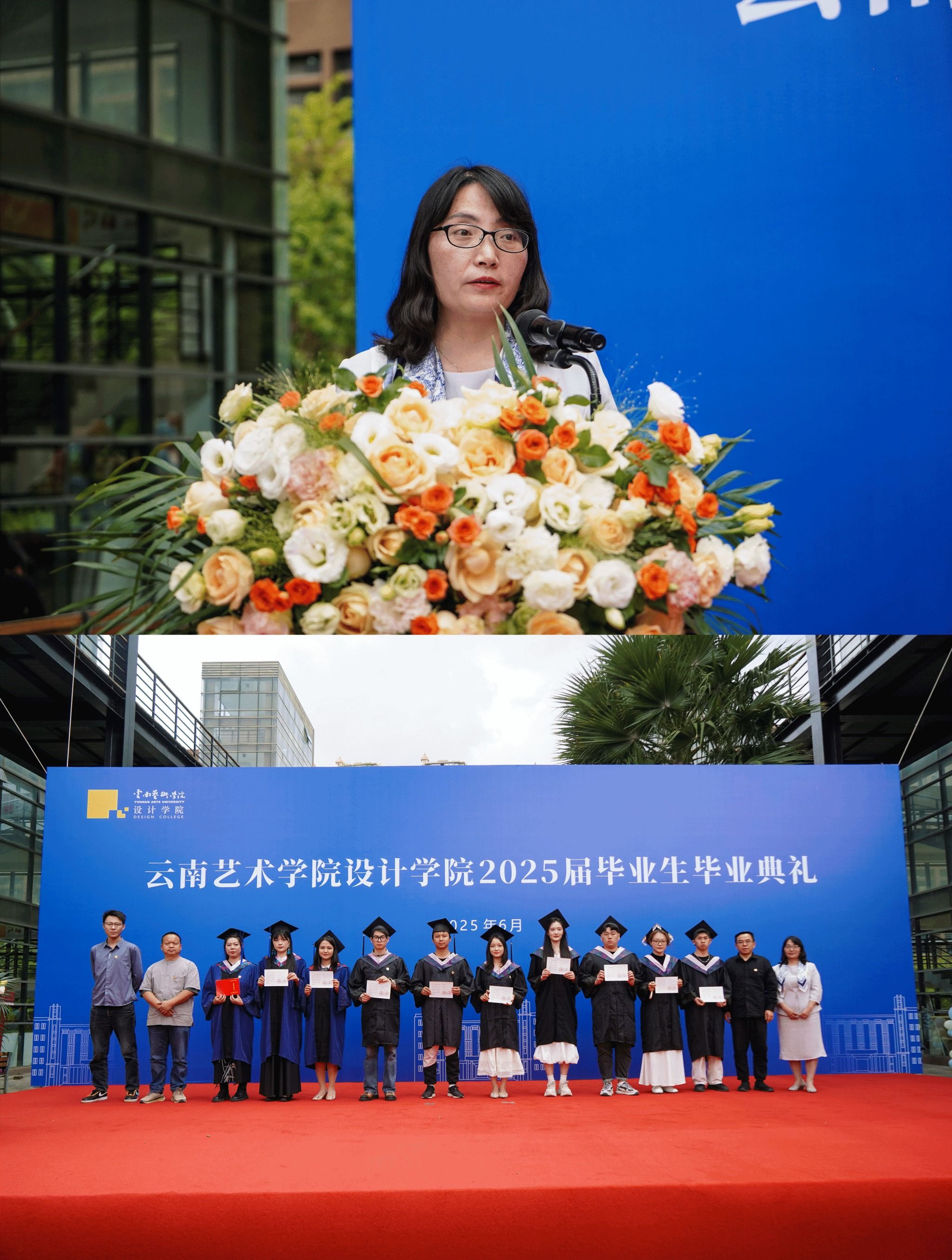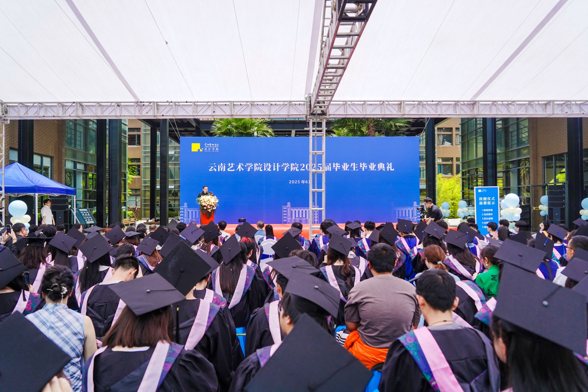 逐梦青春,扬帆远航。2025年6月24日下午,设计学院2025届毕业生毕业典礼在学院中庭小广场举行。设计学院院长万凡,党委副书记、纪委书记欧阳继梅,副院长邹洲出席,副院长杨凌辉主持。各科室系部负责人、专业教师代表、全体辅导员、毕业班班主任、部分家长及300余名2025届毕业生共同参加了毕业典礼。
