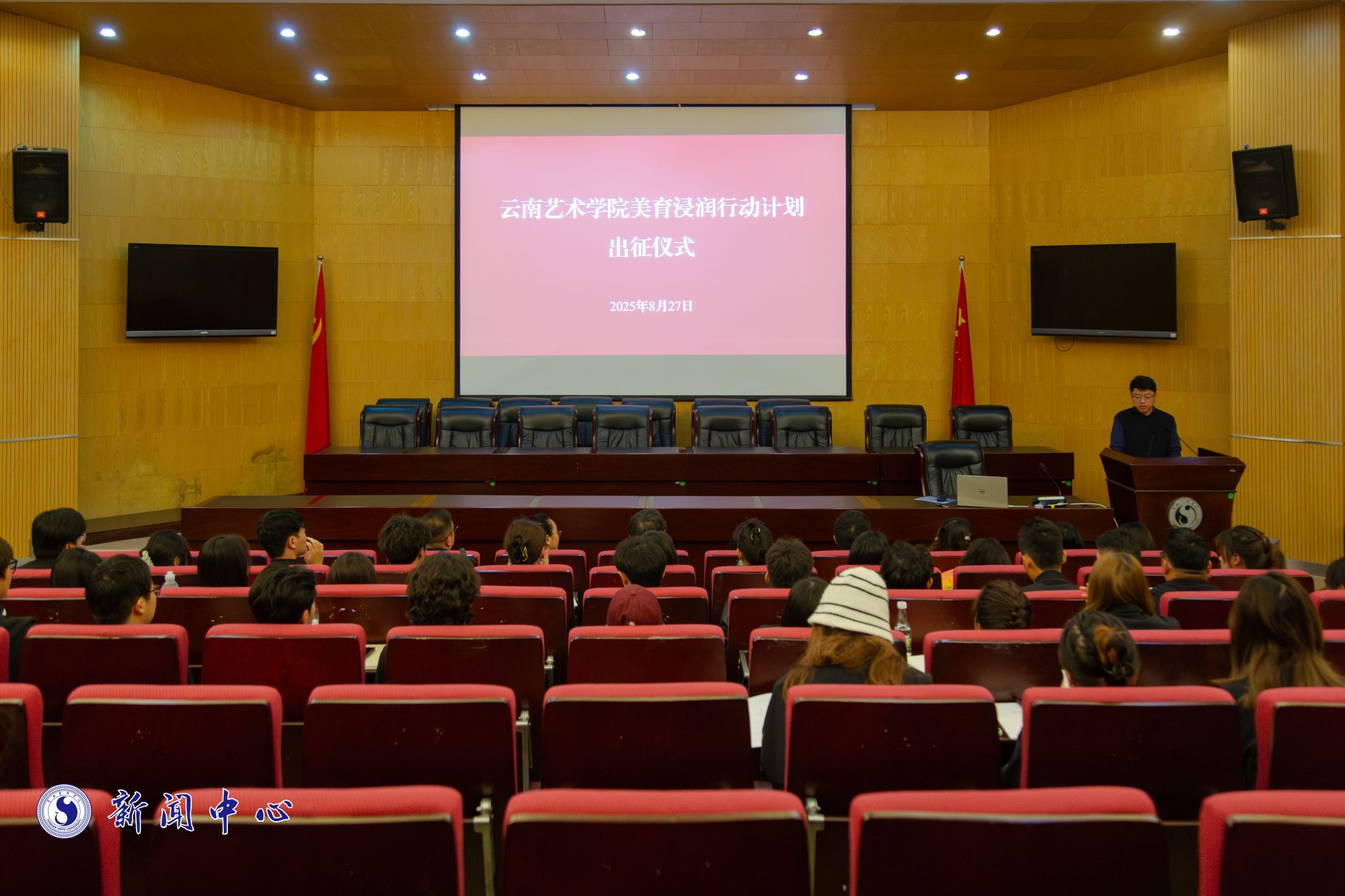 8月27日上午,学校第五轮美育浸润行动计划出征仪式在行政楼116会议室举行,副院长陈劲松出席。仪式由教务处副处长杨斌主持。