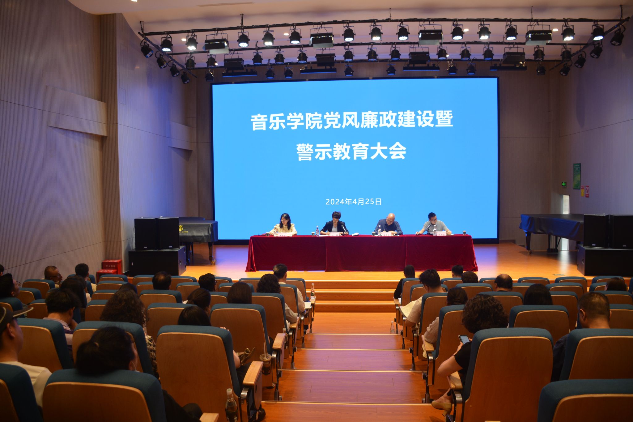 音乐学院党风廉政建设暨警示教育大会同步召开。党总支副书记肖本俊传达领学了学校2024年党风廉政建设和清廉买球建设工作部署会暨警示教育大会精神,结合学校近几年发生的违纪违法典型案例开展了警示教育,并对音乐学院党纪学习教育进行了安排。肖本俊副书记还就推进“三全育人”工作作了安排。