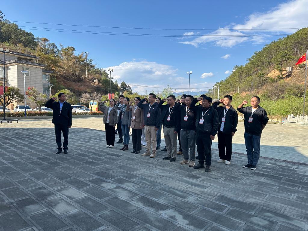 22日下午,红色教学环节,培训班学员前往巍山县巍宝山乡翁家丫口革命纪念馆参观学习。2021年初,设计学院组建以党委委员周映河同志为组长的工作专班,精心投入纪念馆提升改造。同年6月29日,巍山县翁家丫口纪念馆全新亮相,对观众开放。纪念馆获评2021年度大理州社会科学普及示范基地并入选州级爱国主义教育基地。参观结束后,全体党员重温了入党誓词。