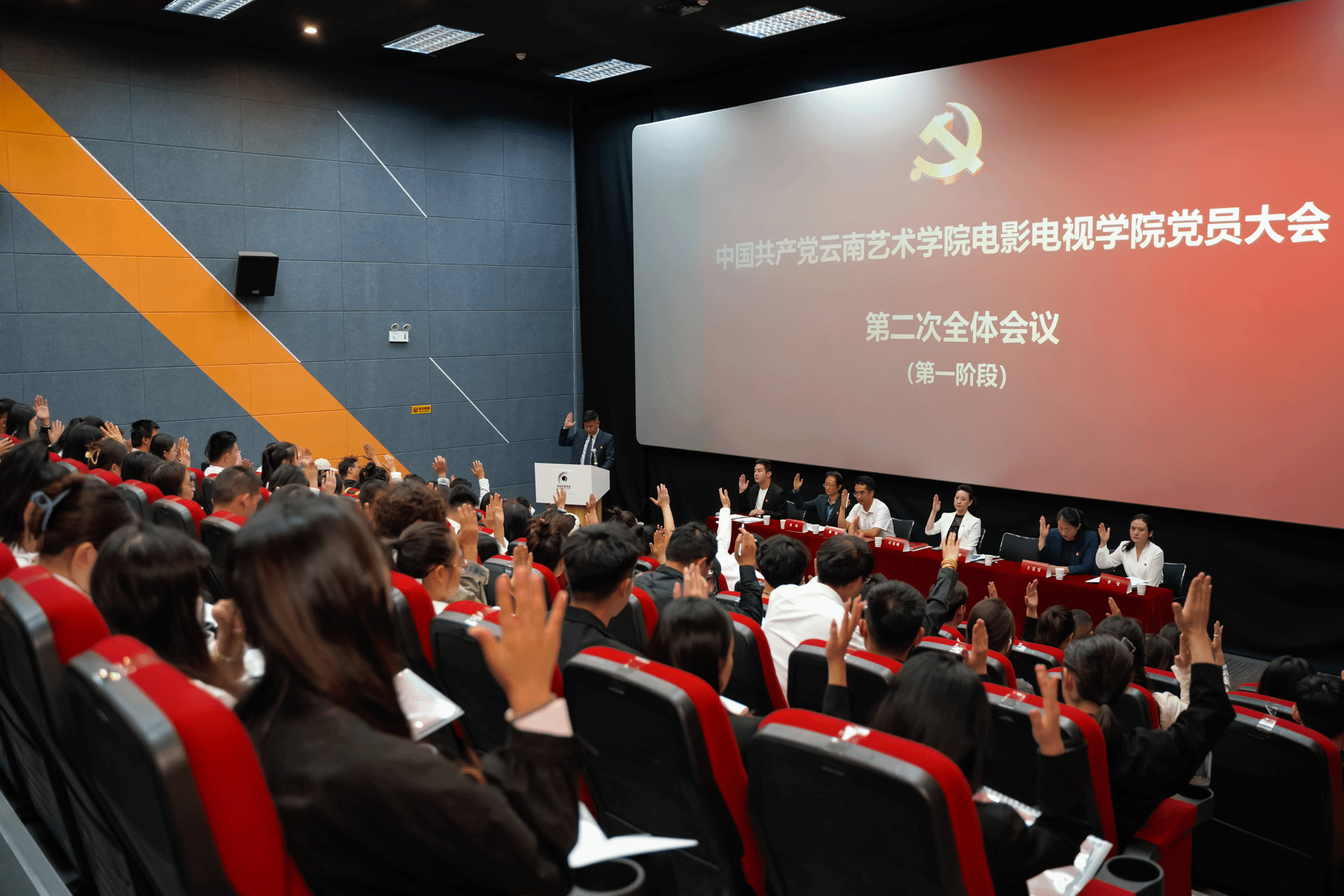 在中国共产党诞辰103周年之际,党的二十届三中全会召开前夕,7月1日,电影电视学院党员大会在电影电视学院106放映厅隆重召开。买球投注官方网站副院长、党委委员王建才同志,学校党委换届督导工作组董晓辉同志、校党委组织部秦朝檑同志出席大会,电影电视学院59名正式党员参会,37名预备党员列席会议。电影电视学院党总支书记洪志明作报告,电影电视学院党总支副书记、院长汪克敏主持。