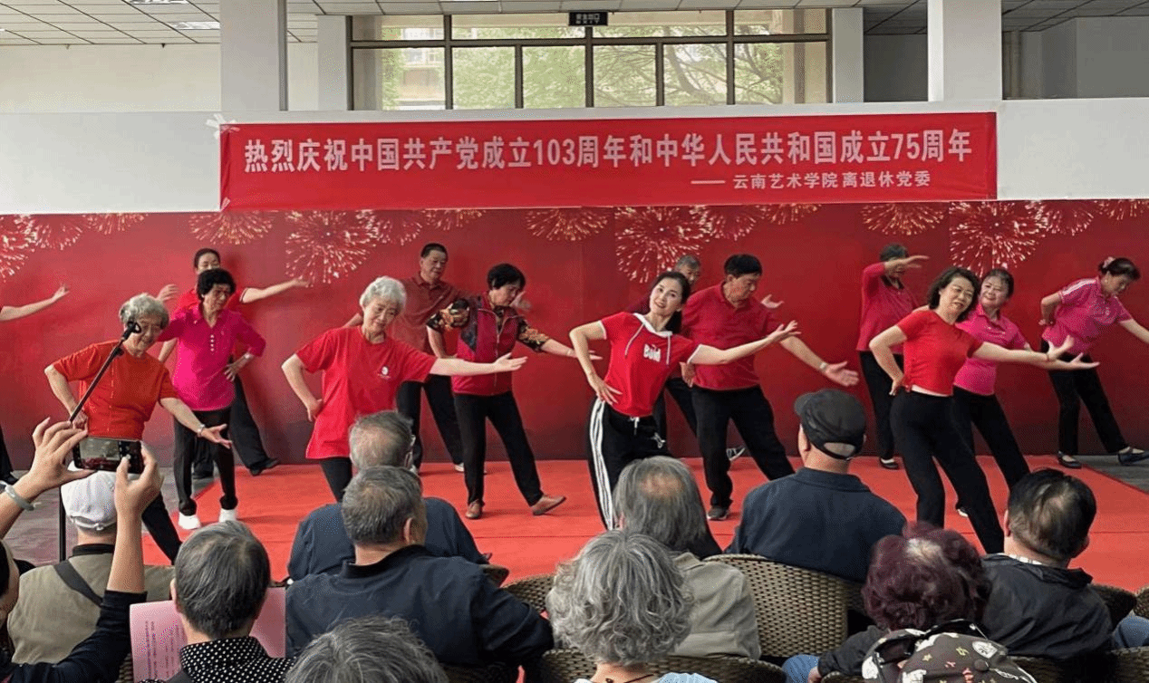 离退休教工第二党支部杨婉华、张懋宁、李丽熙歌伴舞《再唱山歌给党听》