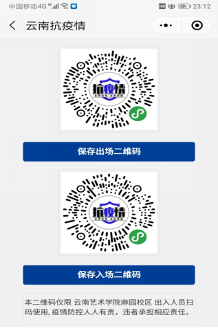 2.买球投注官方网站在呈贡校区和麻园校区入口和出口对应张贴“云南抗疫情”二维码,并监督院校师生、相关人员在入、出学校时扫描二维码登记信息。