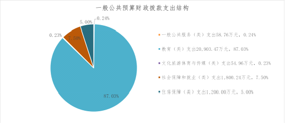 5.教育(类)支出20,903.47万元,占一般公共预算财政拨款总支出的87.03%。主要用于教育管理事务、高等教育、职业教育等;
