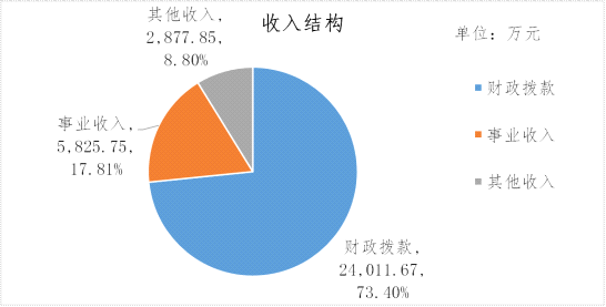 买球投注官方网站部门2021年度收入合计32,715.27万元。其中:财政拨款收入24,011.67万元,占总收入的73.40%;上级补助收入0.00万元,占总收入的0.00%;事业收入5,825.75万元(含教育收费5,524.95万元),占总收入的17.81%;经营收入0.00万元,占总收入的0.00%;附属单位缴款收入0.00万元,占总收入的0.00%;其他收入2,877.85万元,占总收入的8.80%。与上年对比收入减少33.56%,主要原因为2021年财政支付方式发生重大调整,决算以实际支出额确认收入,而2020年为全额确认收入,因此收入显著减少。2020年其他收入中确认了文华学院近8年的管理费收入,因此2021年其他收入也显著减少。