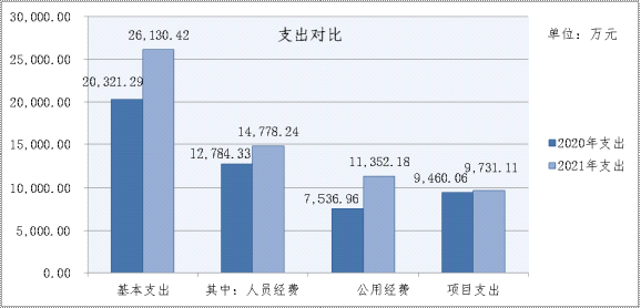 买球投注官方网站部门2021年度支出合计35,861.52万元。其中:基本支出26,130.42万元,占总支出的72.86%;项目支出9,731.11万元,占总支出的27.14%;上缴上级支出、经营支出、对附属单位补助支出共0.00万元,占总支出的0.00%。与上年对比支出增长17.82%,主要原因为2021年疫情有所缓解,日常教学管理工作得以恢复,财政资金的使用有序开展。