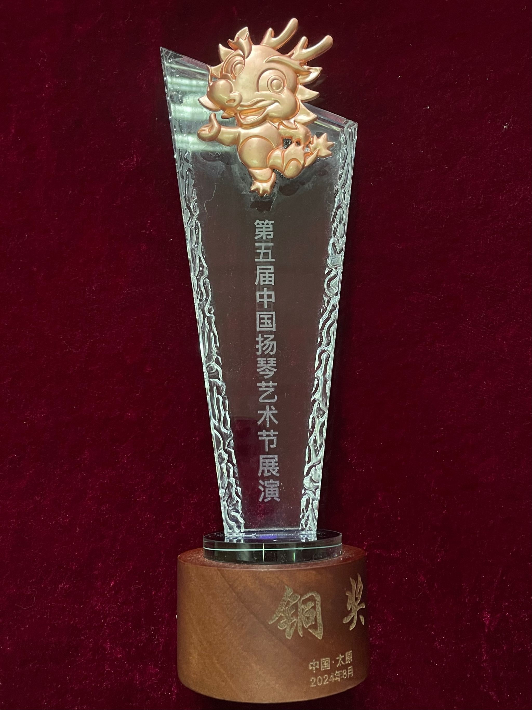 2024年7月29日至8月2日,由中国民族管弦乐协会扬琴专业委员会、山西省音乐家协会、太原市委宣传部主办的太原首届扬琴艺术节暨第五届中国扬琴艺术节展演在太原举行。音乐学院国乐系系主任王静教授带领扬琴专业学生参与了此次展演。2023级研究生蔡欣彤、2023级本科学生钟佳组成的“云之蝶”组合获职业独奏B组铜奖,钟佳获职业青年B3组铜奖。