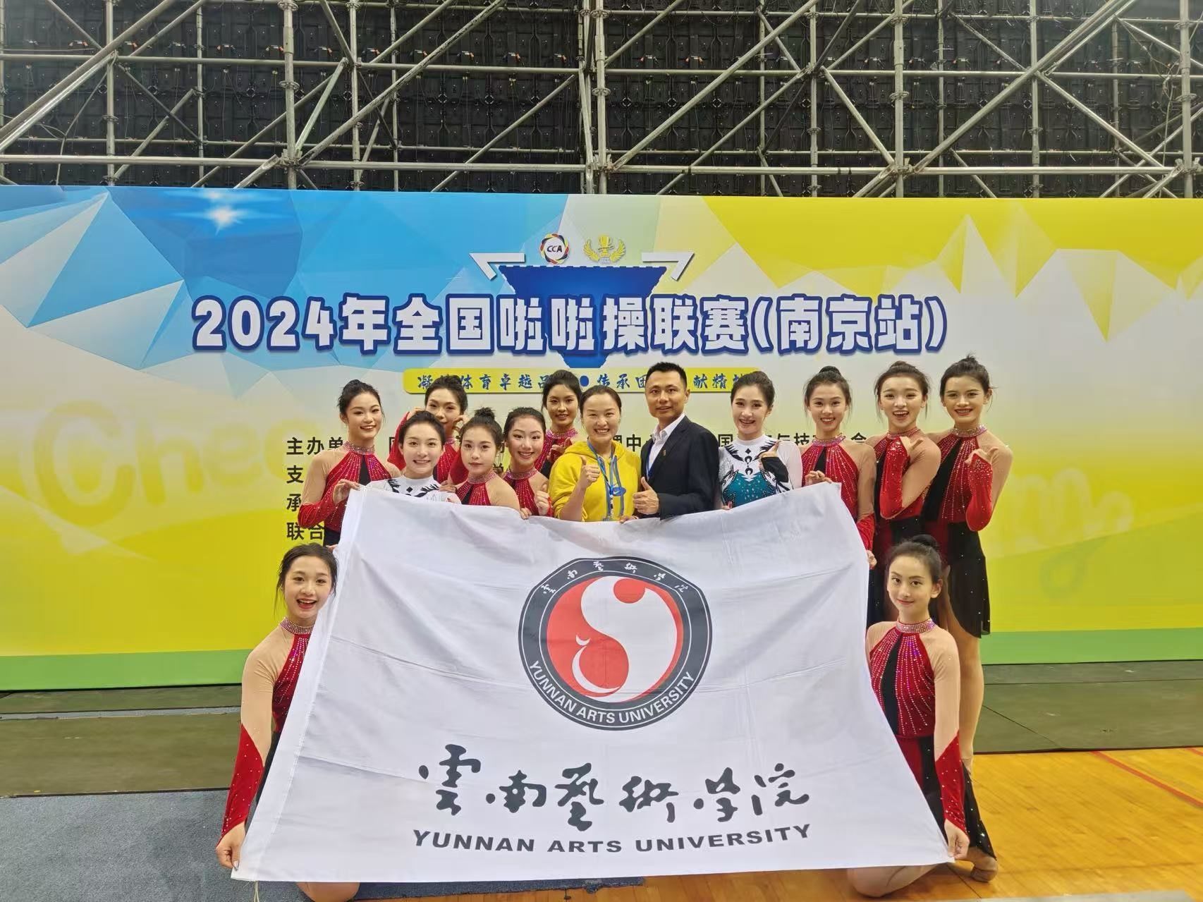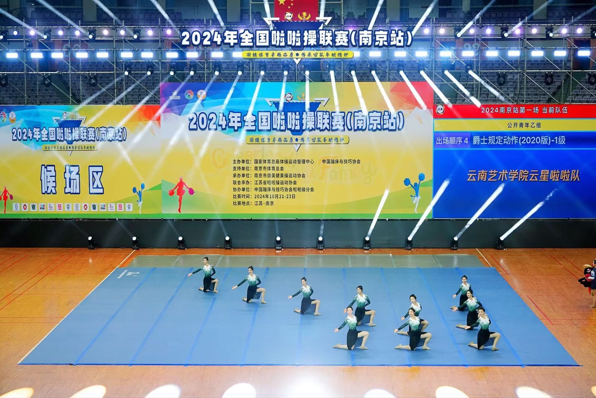 由国家体育总局体操运动管理中心、中国蹦床与技巧协会主办的2024年全国啦啦操联赛(南京站)于2024年10月21日-23日在南京市奥体中心体育馆举行,来自全国各省市的90支队伍共2212名运动员参与本次比赛。买球体育教学部组队参赛,由石刚老师担任领队,崔雅平、肖镜明两位老师带队,经过激烈角逐,12名队员顽强拼搏、最终获得公开青年乙组双人爵士自选动作、双人花球自选动作、爵士规定动作(2020版)1级、爵士规定动作(2020版)4级、集体爵士自选动作五项冠军。